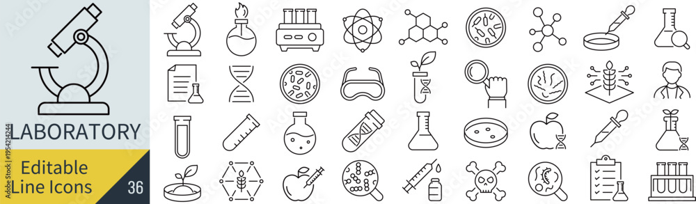 Naklejka na ściany i meble - 線の編集ができる研究所に関するアイコンセット(アウトライン化していない) .