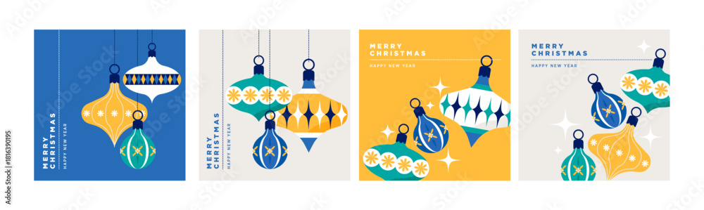 Naklejka na ściany i meble - Merry Christmas and Happy New Year greeting cards for business and personal use. Vector illustrations for greeting card, website banner, social media banner, marketing material..
