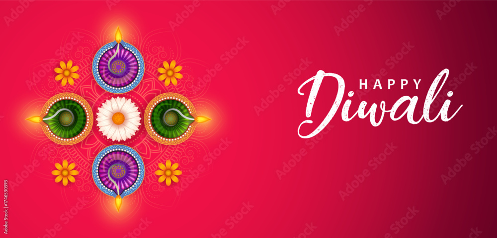 Naklejka na ściany i meble - burning diya on Happy Diwali Holiday background for light festival of India.