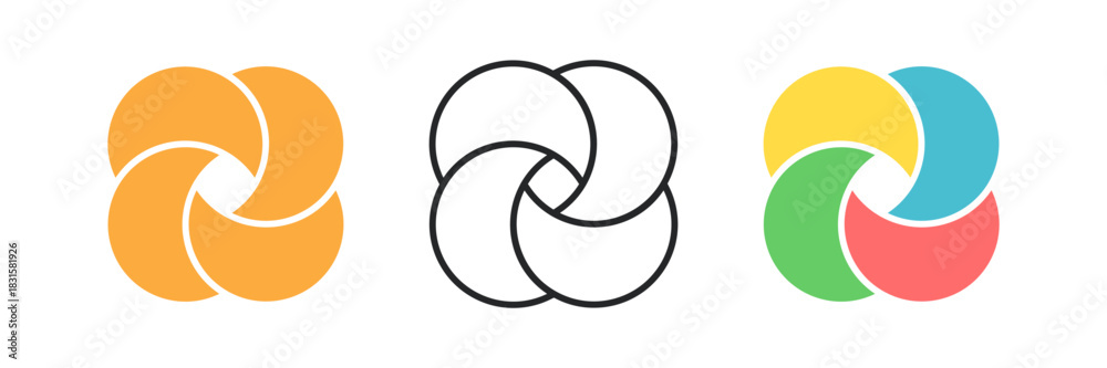 Naklejka na ściany i meble - Circle Venn diagram with four parts. Intersecting circles set. Infographic chart icon. 4 overlap balance elements diagram. Business process chart. Vector illustration isolated on white background..