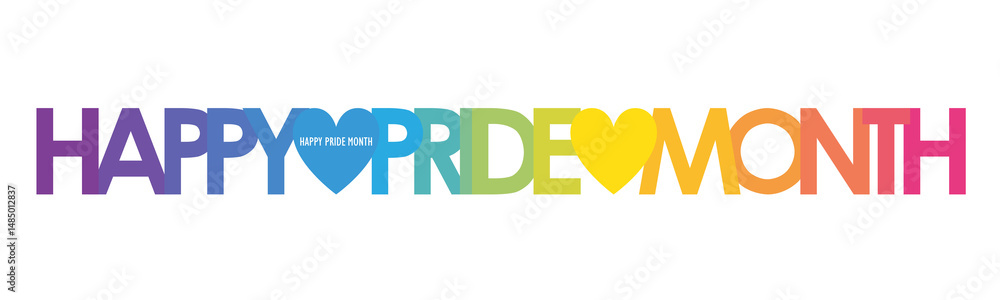 Naklejka na ściany i meble - HAPPY PRIDE MONTH colorful typography banner with rainbow gradient on transparent background.