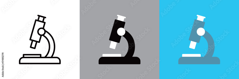 Naklejka na ściany i meble - 顕微鏡のモノクロアイコンとカラーアイコンのセット.