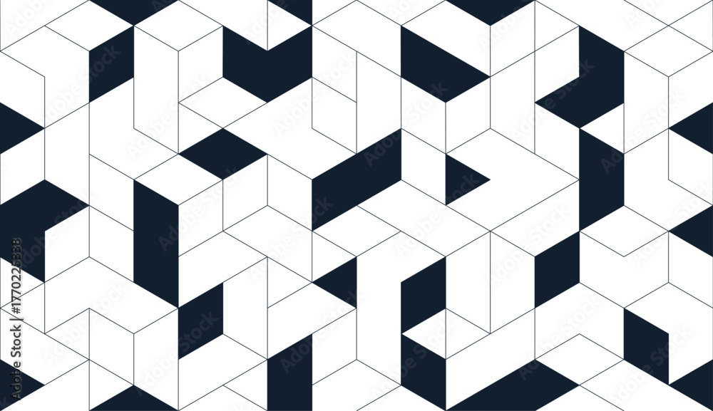 Naklejka na ściany i meble - Cubes abstract architecture background, construction seamless pattern with 3D blocks, geometric linear polygon wallpaper, isometric cubic tiling pattern..