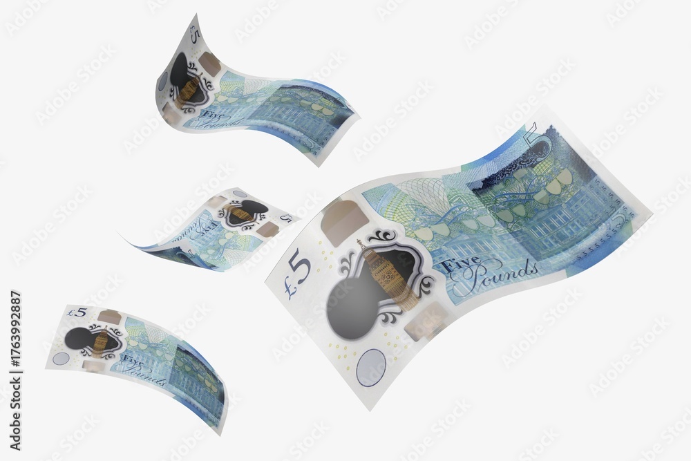 Naklejka na ściany i meble - 5 British pounds bank notes.