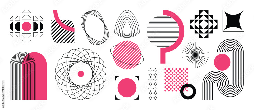 Naklejka na ściany i meble - Hand drawn abstract minimal element mid century vector set. Aesthetic contemporary stripe line art, geometric shape in monochrome. Art form design for wall art, decoration, wallpaper.