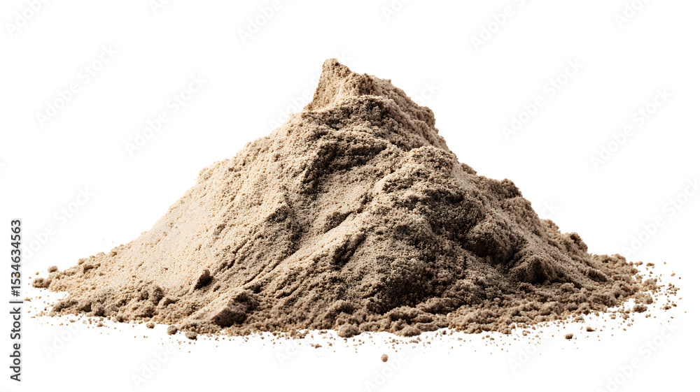 Naklejka na ściany i meble - A close up shot of pile of sand or soil against isolated on white transparent background showing detailed texture and composition.