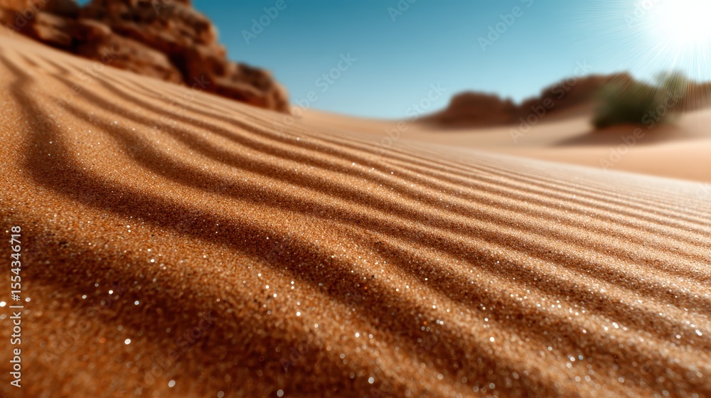 Naklejka na ściany i meble - An artistic close-up of sand dunes in a desert landscape, showcasing the intricate patterns caused by wind and sunlight, evoking a sense of tranquility and vastness..