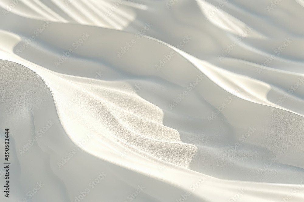 Naklejka na ściany i meble - Abstract close-up of white sand dunes with soft flowing patterns under gentle light, creating a peaceful and serene natural landscape..