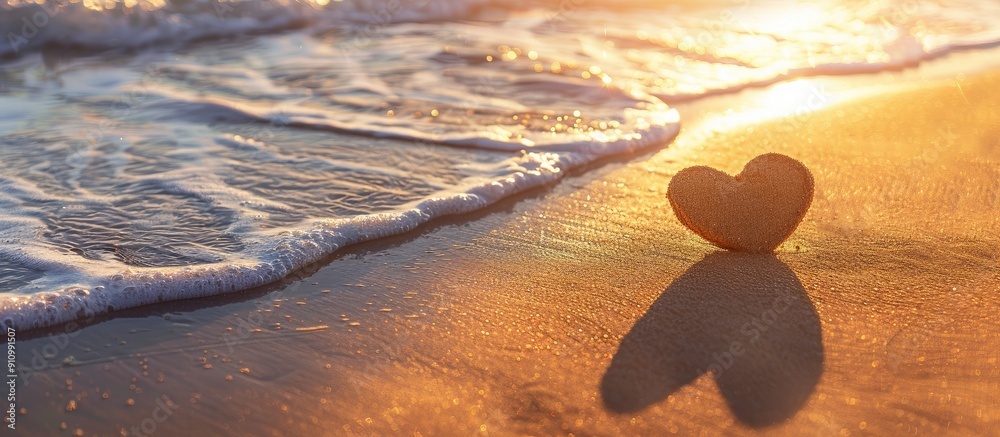 Naklejka na ściany i meble - A beach with heart shaped sand gentle waves and a romantic ambience resembles a Valentine s Day copy space image.
