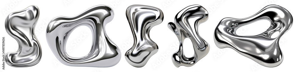 Naklejka na ściany i meble - PNG Abstract fluid shape chrome white background appliance, transparent background.