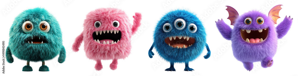 Naklejka na ściany i meble - PNG Colorful fluffy cartoon monsters, element set on transparent background.