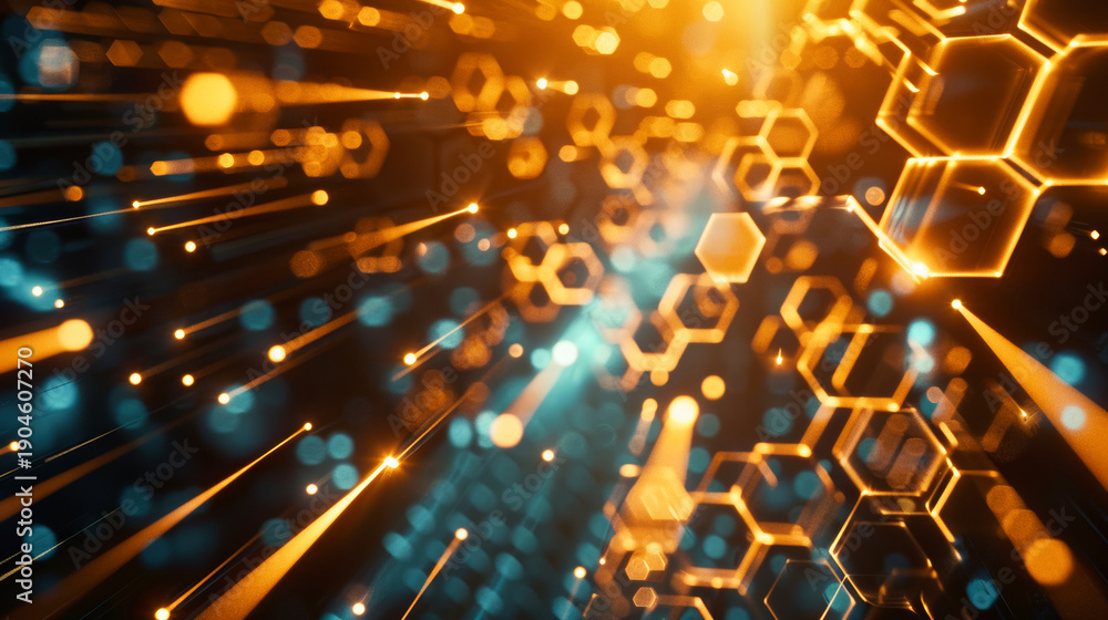 Naklejka na ściany i meble - Dynamic abstract advanced technology composition, with hexagons and light beams.