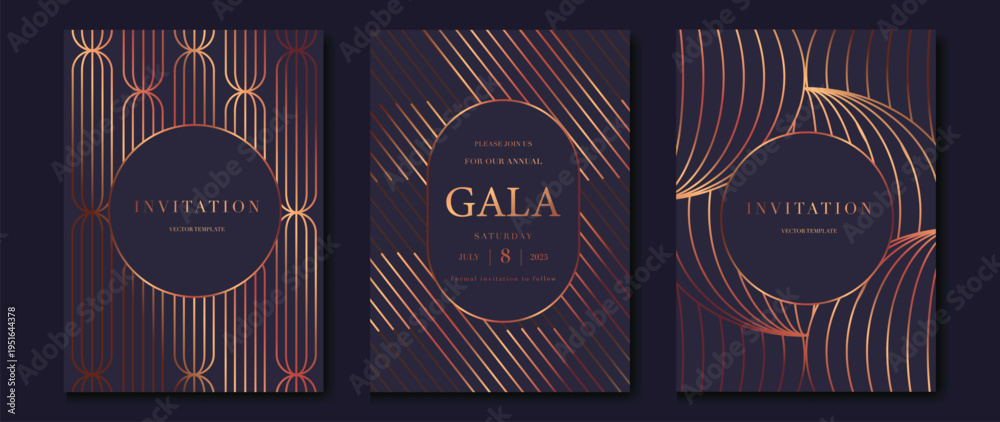 Naklejka na ściany i meble - Art deco wedding invitation card vector. Luxury classic antique cards design for VIP invite, Gatsby invitation gold, Fancy party event, Save the date card and Thank you card. Vector illustration.