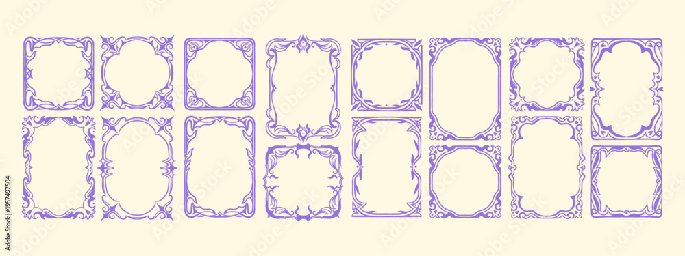 >Naklejki na ściany i meble>Wybrane motywy - zobacz więcej !>Ptaki>Vintage victorian frames, hand drawn retro borders, gothic swirl ornamental holiday wedding decor. Elegant baroque postcard design, royal antique filigree graphic print set. Vintage square frames