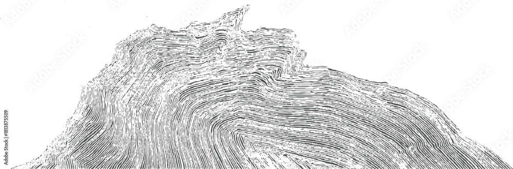 Naklejka na ściany i meble - Detailed black and white illustration of folded geological strata and rock formations geology.