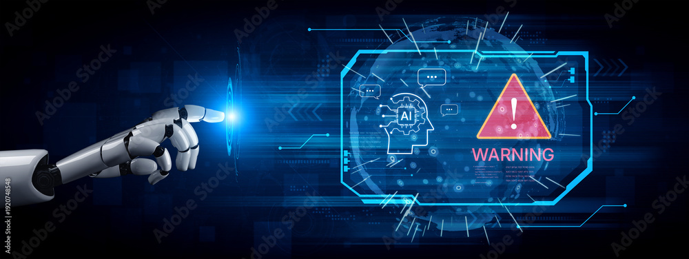 Naklejka na ściany i meble - Futuristic artificial intelligence concept depicting AI hallucination, processing errors, and generating misinformation. Represents the risks of unreliable algorithms and model collapse. Corpus.