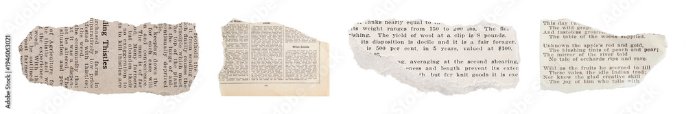 Naklejka na ściany i meble - PNG Vintage torn newspaper clippings collection on transparent background.