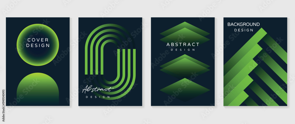 Naklejka na ściany i meble - Modern gradient poster background vector set. Abstract cover template with monotone perspective geometric prism shape. Ideal design for social media, cover, banner, flyer..