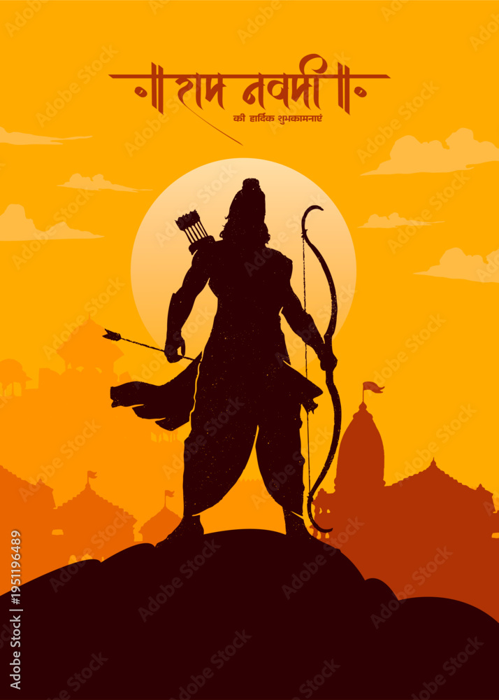 Naklejka na ściany i meble - "Ram Navami" Calligraphy in Hindi, Marathi with Shree Ram vector illustration banner design template.