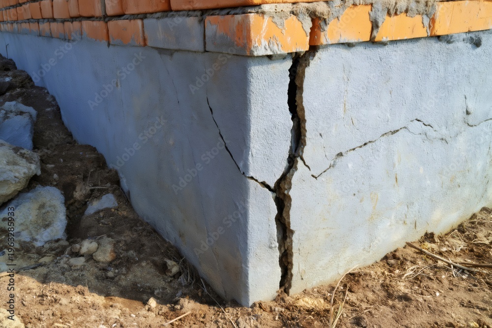 Naklejka na ściany i meble - Building foundation wall showing concrete crack damage.