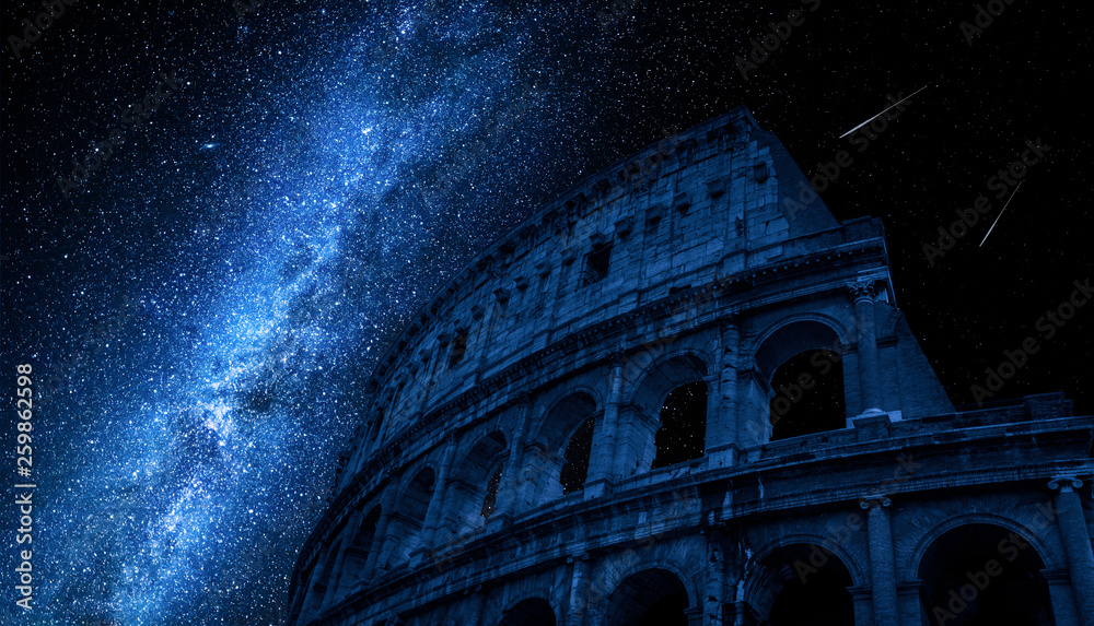 Naklejka na ściany i meble - Milky way over Colosseum in Rome, Italy.