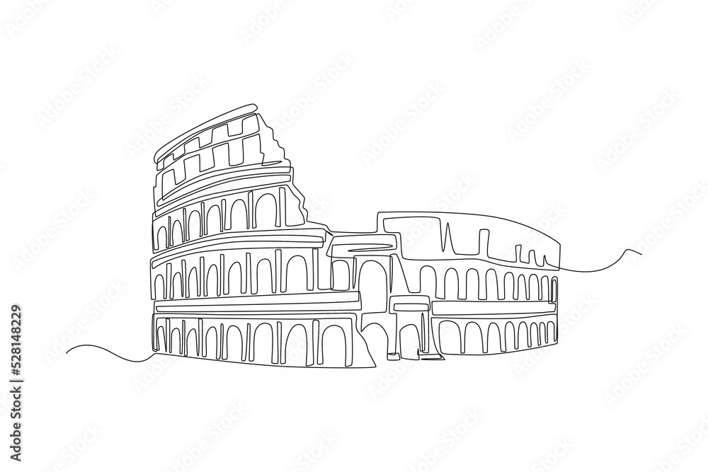 Naklejka na ściany i meble - Continuous one line drawing Colosseum amphitheater in Rome, Italy. Landmark concept. Single line draw design vector graphic illustration..