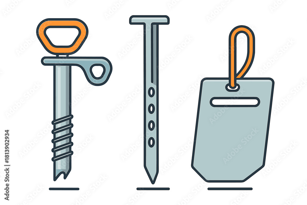 Naklejka na ściany i meble - Essential mountaineering and climbing safety equipment for snow and ice conditions.