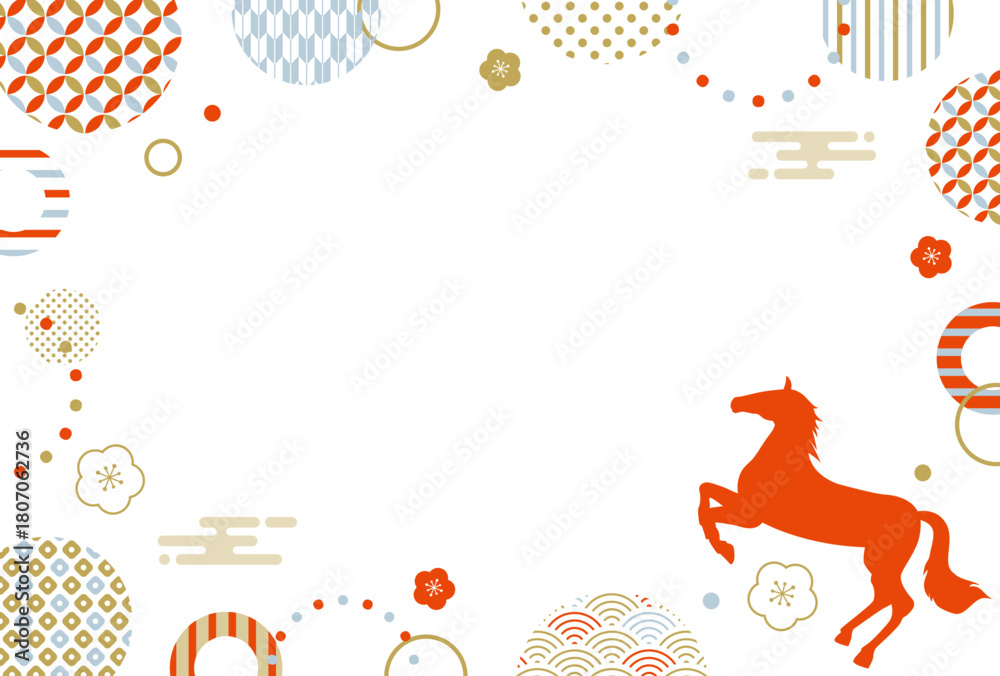 Naklejka na ściany i meble - 2026年 午年 馬と梅と和柄 おしゃれな年賀状 .