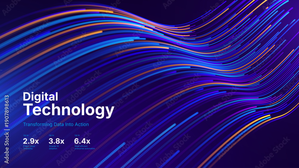 Naklejka na ściany i meble - Abstract AI Data Stream Architecture with Neural Connections. Big Data Fintech Technology Backdrop for Corporate Innovation and Digital Transformation. Modern Tech Presentation Vector Illustration..