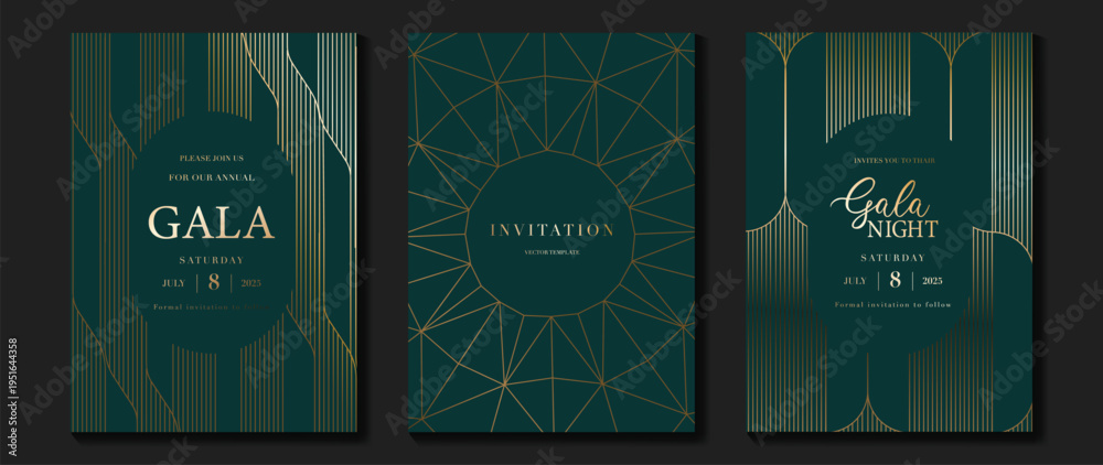 >Naklejki na ściany i meble>Wybrane motywy - zobacz więcej !>Sport>Luxury green art deco wedding invitation card vector. Classic antique cards design for VIP invite, Gatsby invitation gold, Fancy party event, Save the date card and Thank you card. Vector illustration