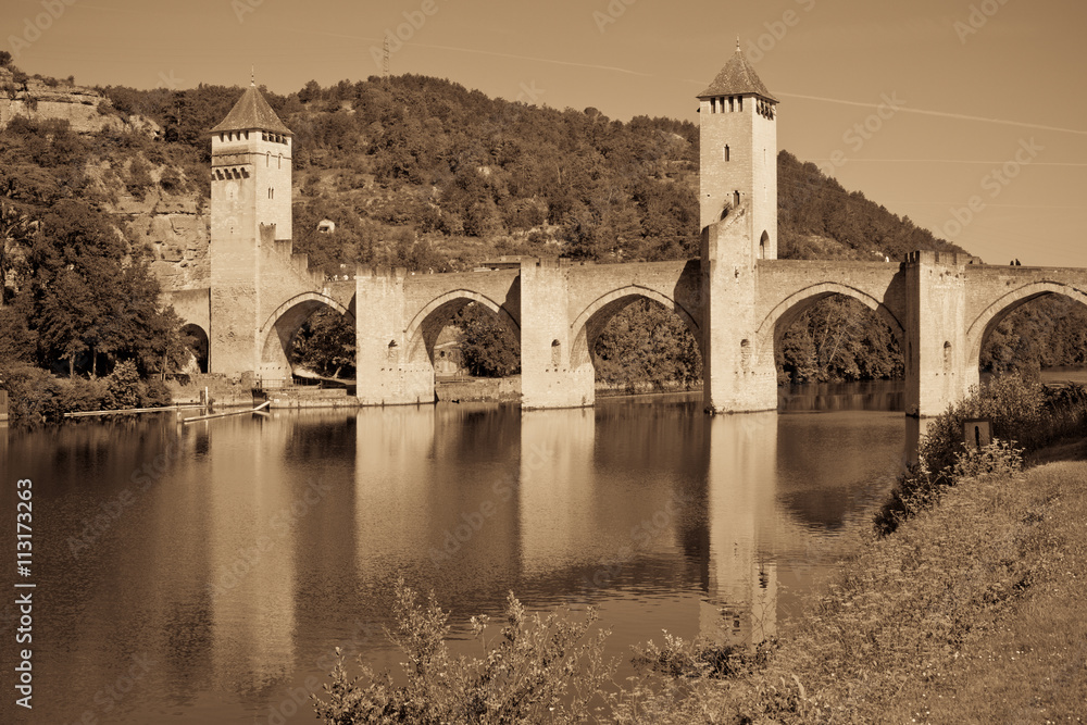 Obraz na płótnie Canvas - The Valentre bridge in Cahors town, France.
