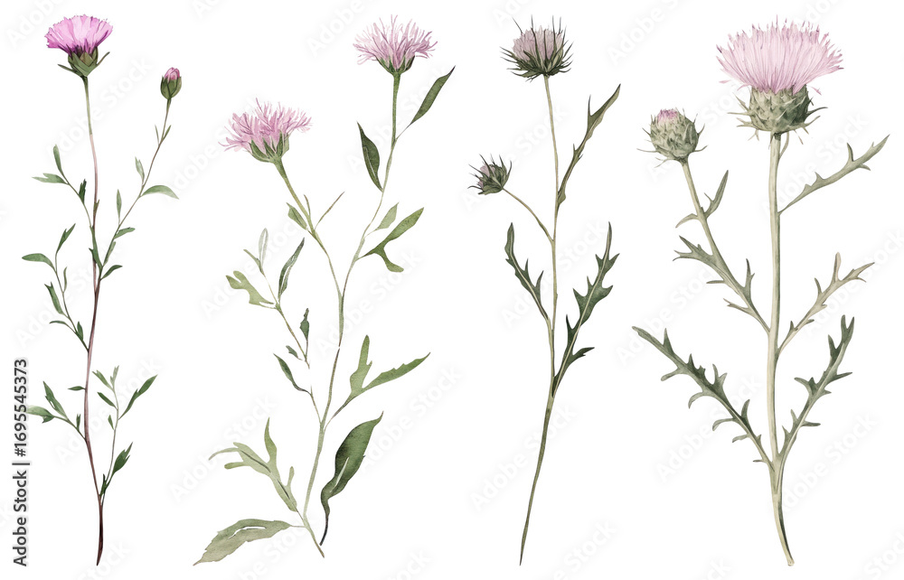 Obraz na płótnie Canvas - PNG Delicate pink thistle blossoms, element set on transparent background.