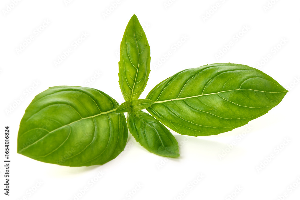 Obraz na płótnie Canvas - Fresh Basil, Ocimum basilicum Leaves, isolated on white background.
