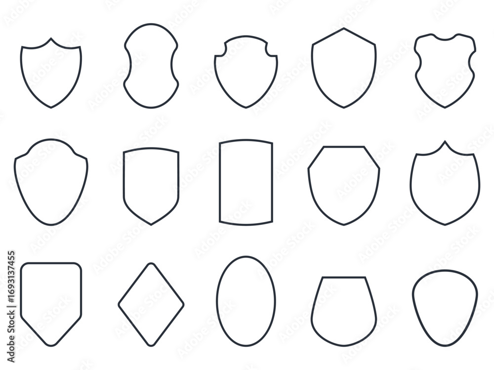 Obraz na płótnie Canvas - Shield frames. Outline frame design, warrior safety elements. Decorative icons for banners, invitation, posters, cards, sapid vector clipart.