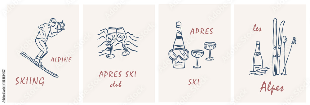 Obraz na płótnie Canvas - Hand drawn retro apres ski posters set.