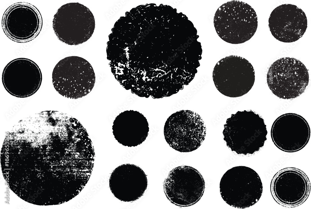 >Obrazy na płótnie Canvas>Wybrane motywy - zobacz więcej !>Słoń>Grunge circle stamps, insignias, labels, tags for your design. Grunge textured black vector rubber stamps.Vector rough edges badges set .Grunge set of textured black labels . Pack of vector stickers.