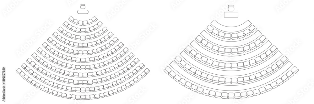 >Obrazy na płótnie Canvas>Wybrane motywy - zobacz więcej !>Słoń>Auditorium seat plan. Quadrant arrangement of seats and desks in amphitheater with place spectators. Top view of scheme of meeting, conference, training, lecture or entertainment. Vector illustration.