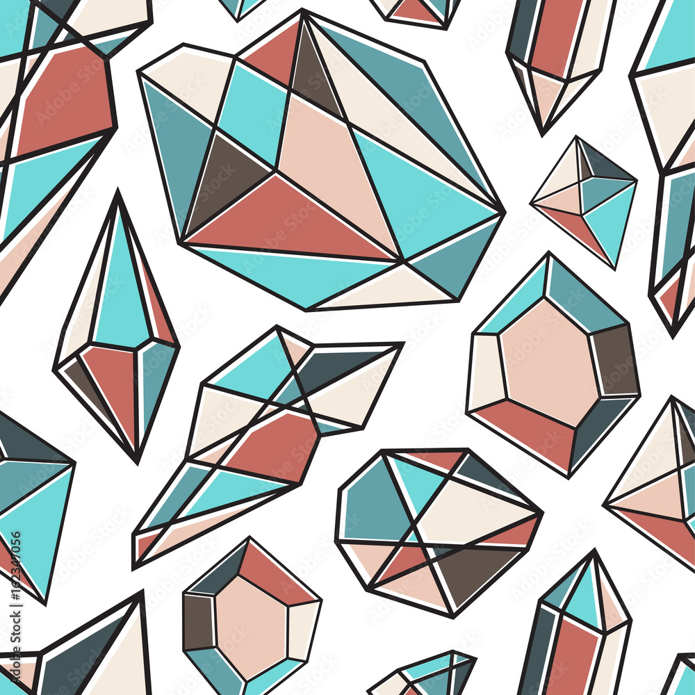 Obraz na płótnie Canvas - modern seamless pattern with colorful diamond shapes and crystals.