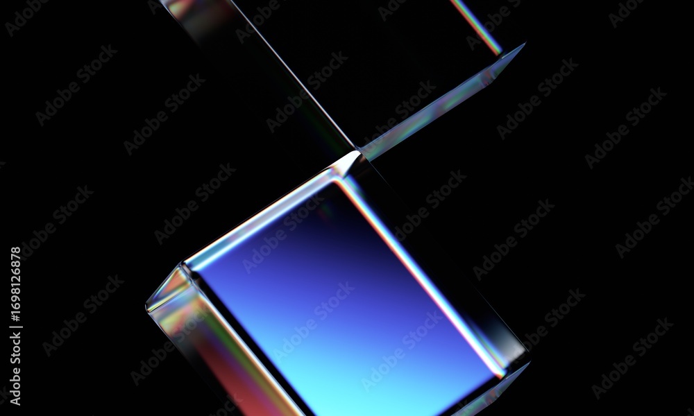 Obraz na płótnie Canvas - Abstract iridescent glass blocks on a black background, 3d render.