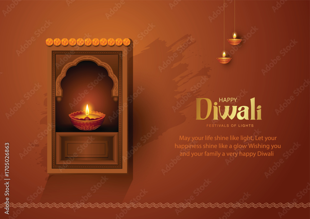 Obraz na płótnie Canvas - Indian festival of lights Happy Diwali, holiday Background, Diwali celebration greeting card, abstract vector illustration design..