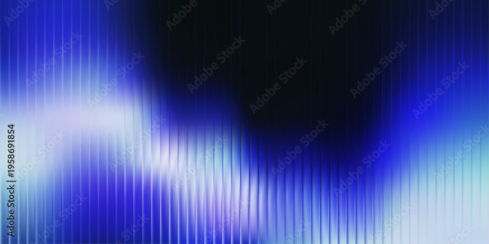 Obraz na płótnie Canvas - Riddle glass background, ripple wave distortion, fractal light flow deep blue gradient surface. Vertical stripe texture, smooth glass color transitions, luminous depth. Vector illustration.