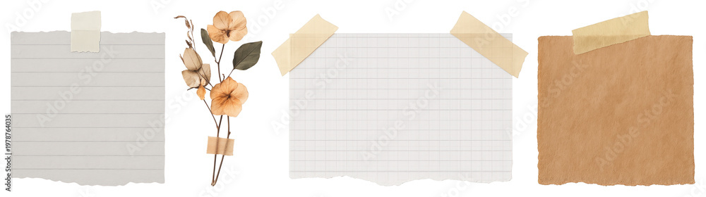 Obraz na płótnie Canvas - PNG Vintage paper with floral accents on transparent background.
