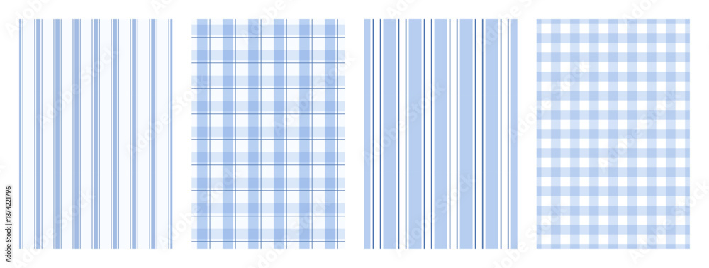 Obraz na płótnie Canvas - Set of Blue Classic Tablecloth Seamless Pattern. Traditional checkered and striped backgrounds for kitchen fabric and textile. Pastel gingham pattern. Repeat wallpaper. Vector aesthetic illustration.
