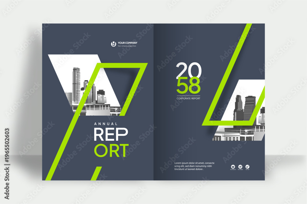 Obraz na płótnie Canvas - Business Report Cover Template – Green Geometric Layout (A4).