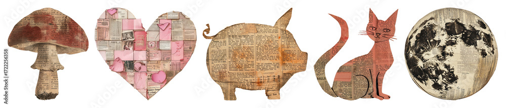 Obraz na płótnie Canvas - PNG Vintage collage art objects, element set on transparent background.