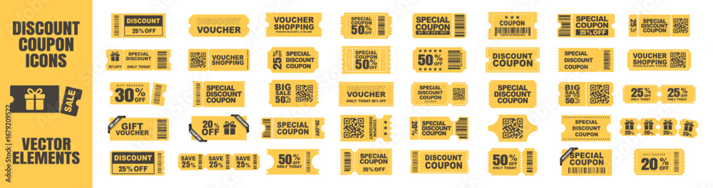 Obraz na płótnie Canvas - Coupon card set, gift vouchers and discount certificate. Promotion sale coupon mockup design with discounts and percent on transparent background.