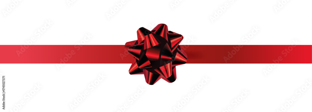 Obraz na płótnie Canvas - Vector decorative shiny gift red ribbon with tied bow design element isolated on white background.