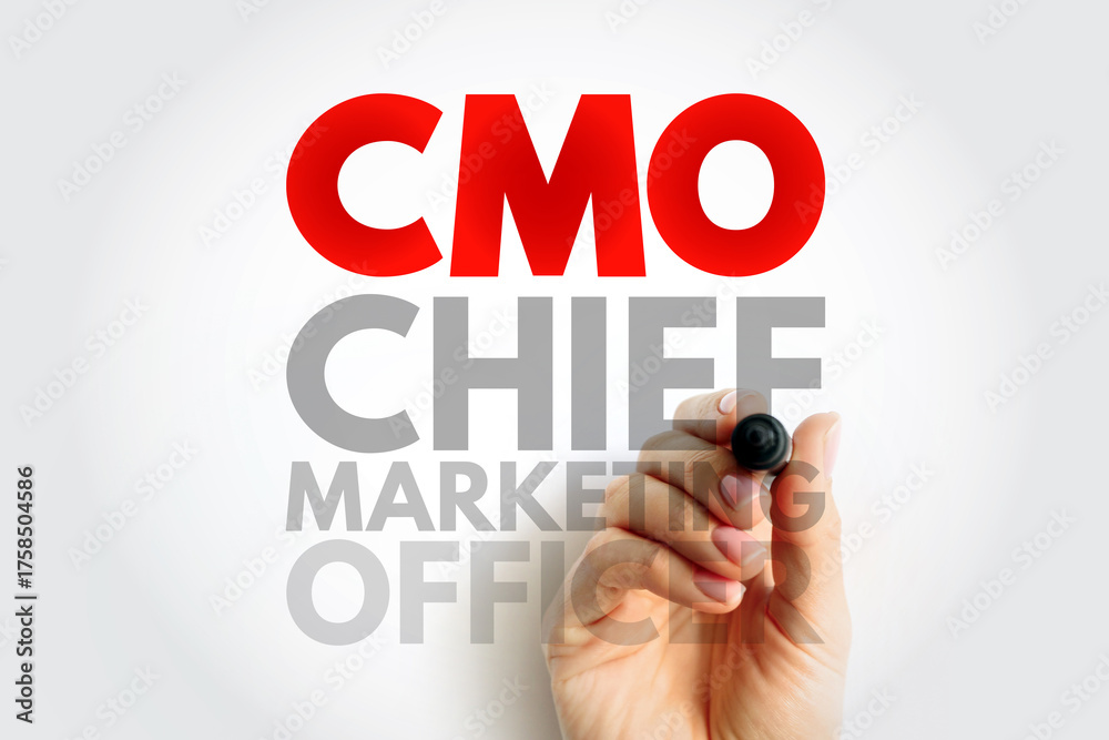 Obraz na płótnie Canvas - CMO Chief Marketing Officer - corporate executive responsible for marketing activities in an organization, acronym text concept background.
