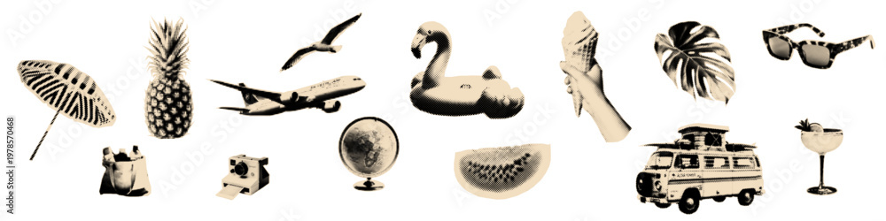 Obraz na płótnie Canvas - Summer vacation halftone cutout set. Travel pop art stickers..