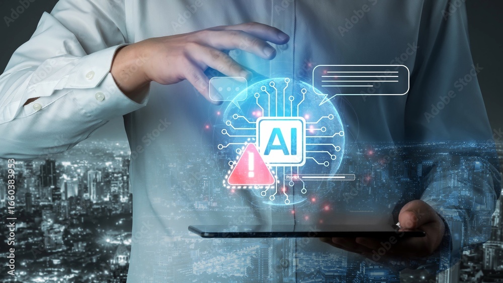 Obraz na płótnie Canvas - AI interface showing prompt error warning and system alert. AI prompt failure can lead to incorrect output or hallucination. Managing AI prompt error is crucial in safe AI deployment. Muxer.
